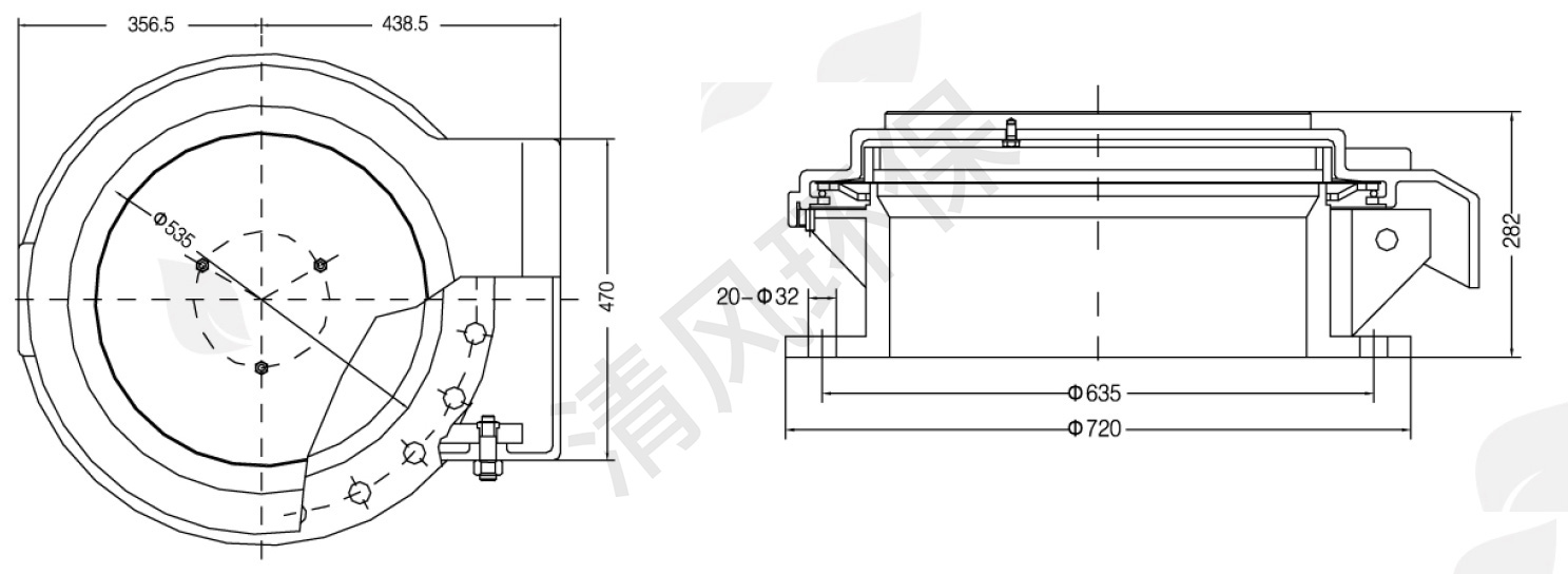 本设备应用于库顶,在库内压力超过正常范围时即自动打开,进行泄压,作为压力保护作用。