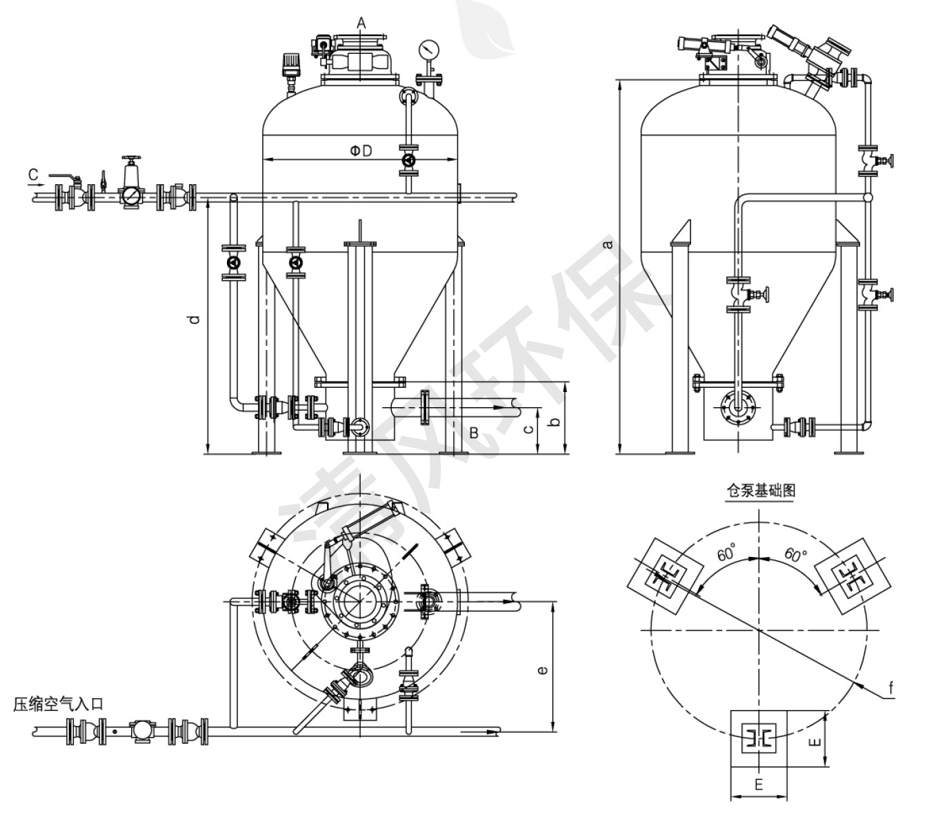 >>L型仓式气力输送泵外形图(mm)